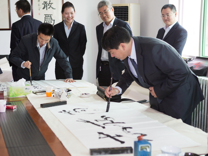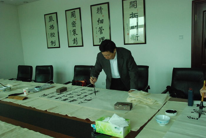 为弘扬传统文化,丰富员工业余生活,5月6日上午,球友会网页版举办了首届书画艺术学习交流活动。本次活动邀请了中国书法家协会会员孟云飞博士、中国书法家协会理事张铜彦先生、中国书法家协会编辑出版委员会副主任王荣生教授、人民艺术家协会理事于瑛先生等国内知名书画大师,各位书画大师在活动现场进行了艺术创作表演,挥毫泼墨,交流技艺,为球友会网页版留下了数十副墨宝,还对部分员工的书画作品进行了悉心指导。公司员工现场欣赏了书画大师的艺术创作,并聆听了有关书画艺术鉴赏知识的介绍,部分员工还在活动现场进行创作,听取书画大师的讲解示范和点评。