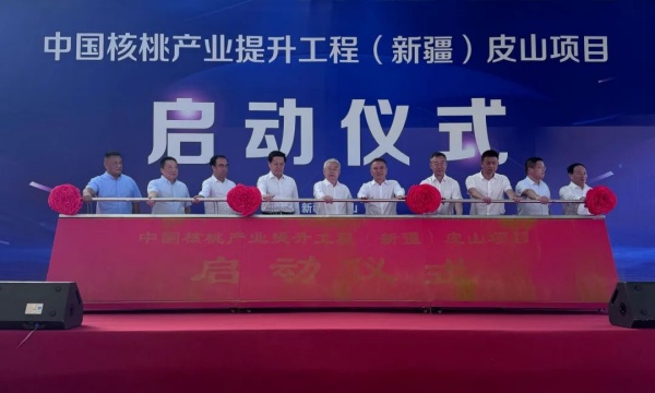 与会领导共同按下启动键,标志着中国核桃产业提升工程(新疆)皮山项目正式启动。新疆维吾尔自治区农业农村厅、林草局、中国粮油学会、和田地区、皮山县有关领导和代表参加此次活动。