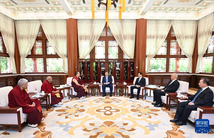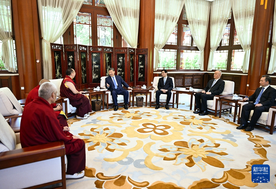 6月6日,中共中央总书记、国家主席、中央军委主席习近平在北京中南海接受班禅额尔德尼·确吉杰布拜见。新华社记者 谢环驰 摄